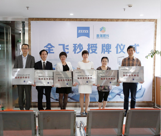 2016年6月5日,德国蔡司全飞秒公司的中国地区代表亲自授牌,携手普瑞眼科医院集团,开展了全飞秒授牌仪式。分别为昆明普瑞、成都普瑞、合肥普瑞、重庆普瑞、南昌普瑞、兰州普瑞共6家医院颁发了“德国蔡司Visumax全飞秒 临床合作单位”荣誉称号,从专业技术等各方面充分肯定了普瑞眼科在开展全飞秒手术方面取得的成就。