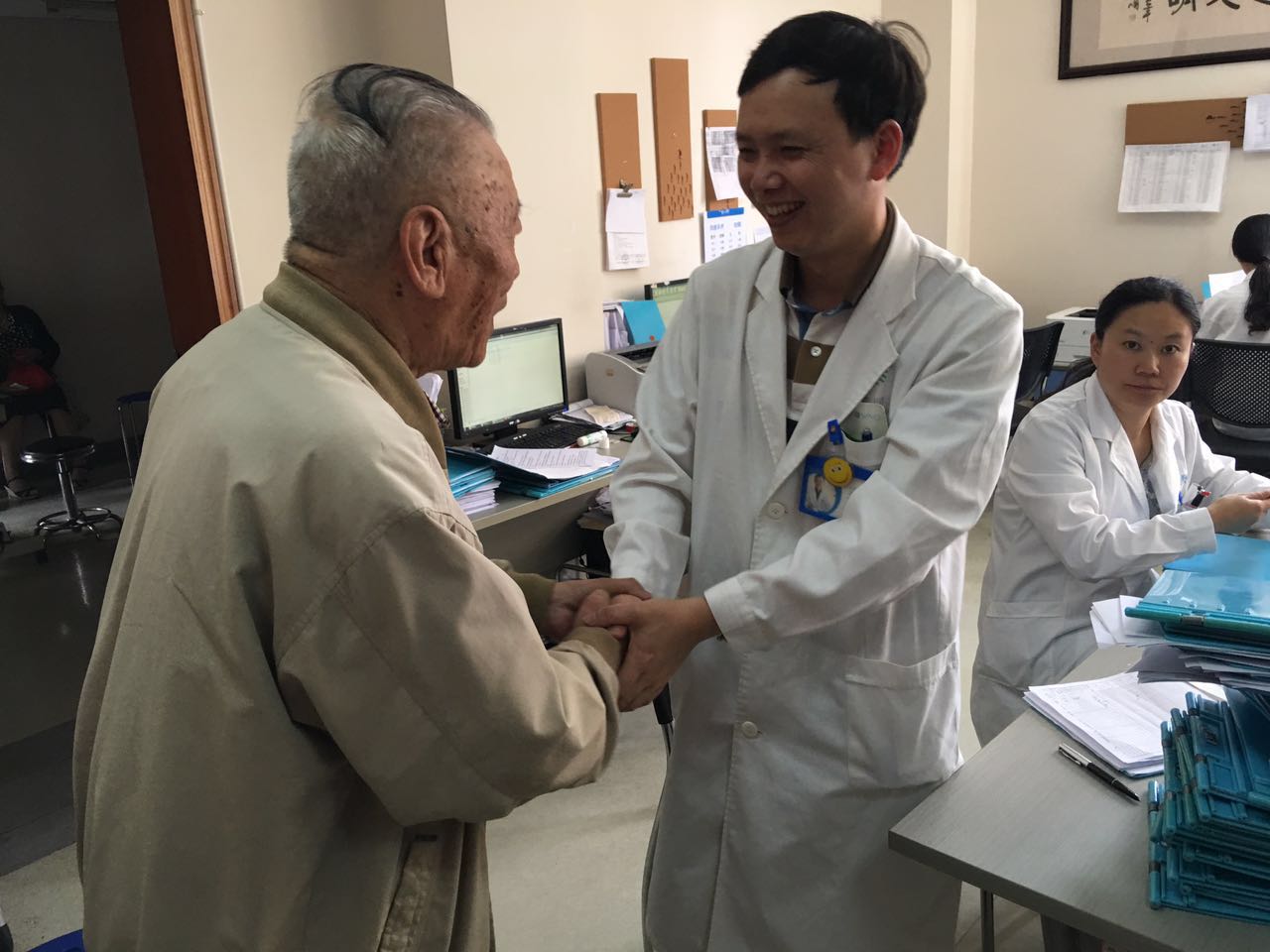 “想念”,这个词说起来轻松,分量却不轻。作为一个工作人员,我默默地掏出手机,拨通了叶院长的电话:“叶院,有一位老人家找你,说,想见你……”“我在三楼给患者复查,你让他到医生办公室找我。”于是,我带着苏大爷去到了叶院长办公室。