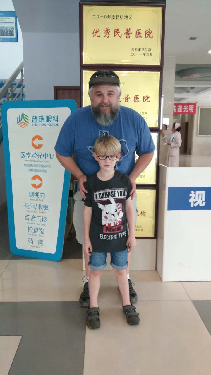 Asher爸爸说,他和Asher的妈妈在昆明一国际学校做外文老师,他们一家人在昆明工作生活8年了,很喜欢这座四季如春的城市。他发现Asher的视力下降后,身边热心的朋友介绍他们到昆明普瑞眼科就诊。